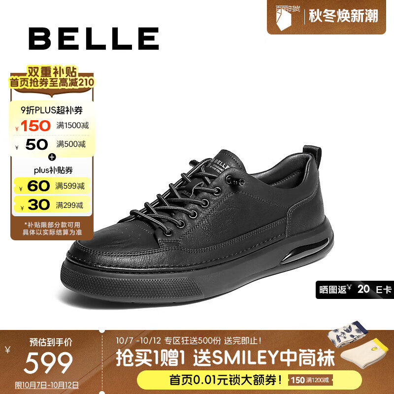 百丽(Belle)男鞋时尚小黑白板鞋男士25新款冬商场款套脚休闲鞋D3MA6DM5 黑色 42 (260mm)