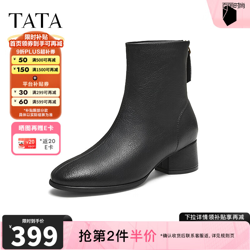 他她(TATA)靴子秋冬百搭时装靴女鞋短靴百搭显瘦切尔西靴女UVG01DD5 黑色 38