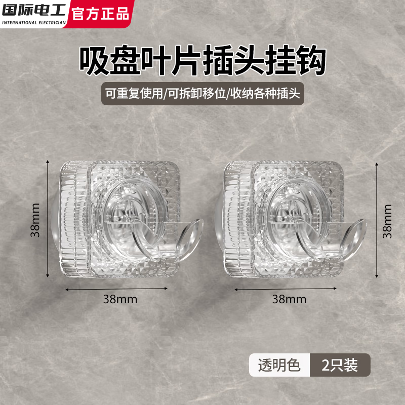 国际电工免打孔插头固定器吸盘挂钩强力承重厨房插座墙上电线电源收纳神器 2只装【强力吸盘/重复使用】透明色