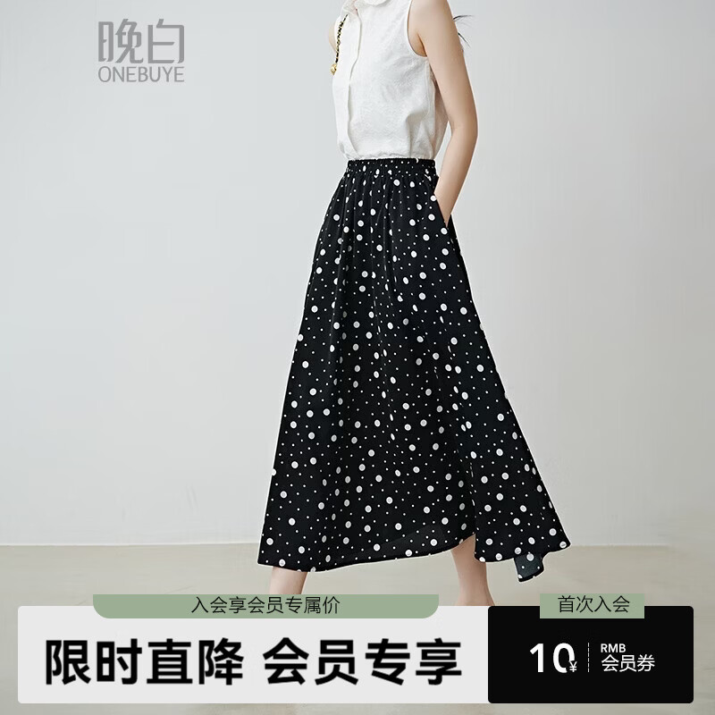 晚白2026年春款复古港风松紧腰带口袋波点半裙垂顺减龄遮胯大摆半身裙 黑色 L