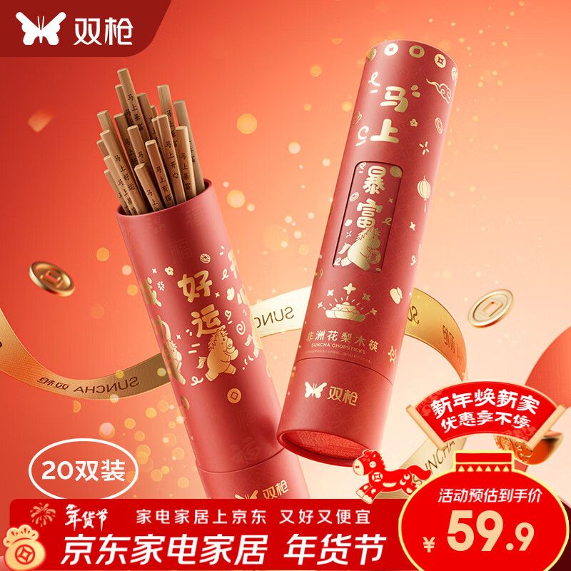 双枪好运筷来转筒礼盒筷花梨木整木送礼过年无漆无蜡 【转筒祈福筷】20双