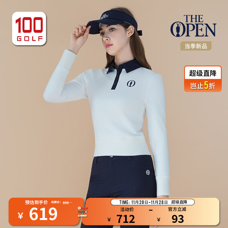 THE OPEN CHAMPIONSHIP英国公开赛高尔夫服装女装长袖T恤25秋冬抓绒拼接保暖御寒POLO衫 白色 S