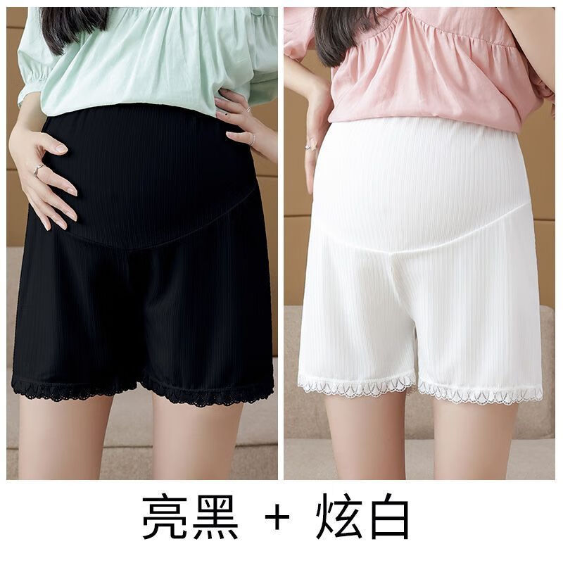 AILUKI孕妇安全裤夏季薄款防走光打底裤宽松孕期短裤大码可调节外穿裤子 2条装(亮黑+炫白) M(建议80-100斤)