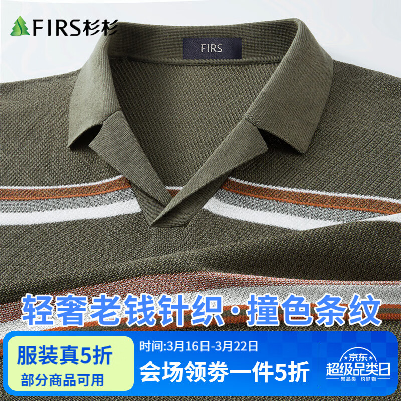 杉杉26新款轻薄透气纯棉高端轻奢老钱风针织撞色条纹短袖T恤polo衫 神灰绿 M