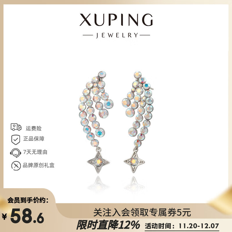 XUPING旭平首饰流星花语 莫奈花园配色女生耳钉送生日礼物 彩白流星雨 1对