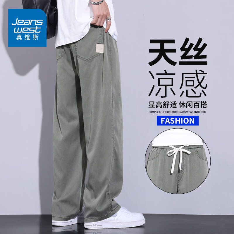真维斯(Jeanswest)2026春夏季薄款天丝休闲裤男士宽松直筒阔腿裤潮牌透气休闲长裤子 绿色 【天丝薄款】 M 建议110-115斤