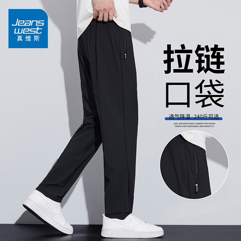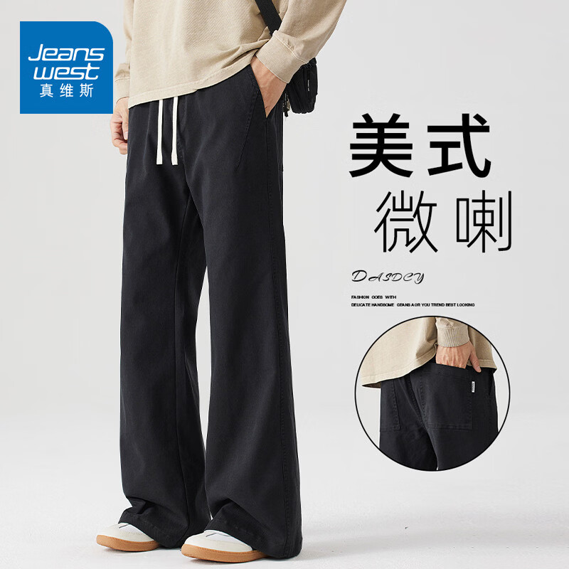 真维斯(Jeanswest)2026春季黑色直筒休闲裤男士潮流百搭宽松垂感运动男士休闲长裤子 黑色 【抗皱舒适】 28 【建议90-105斤】