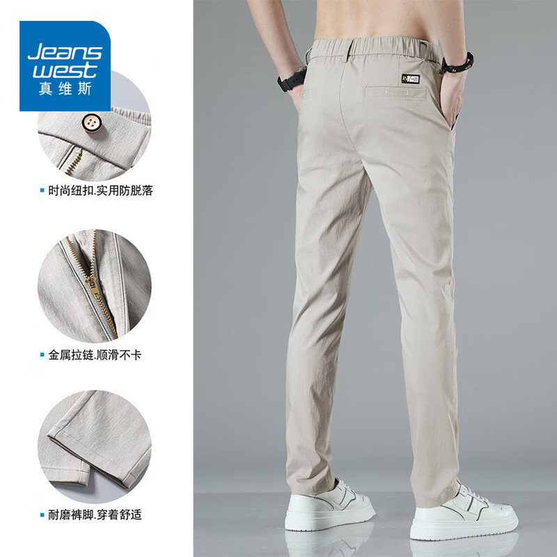 真维斯(Jeanswest)2026新款春季复古百搭休闲裤男士束脚裤宽松美式风直筒运动长裤子 浅卡其色 【美式复古】 M 【建议90-115斤】