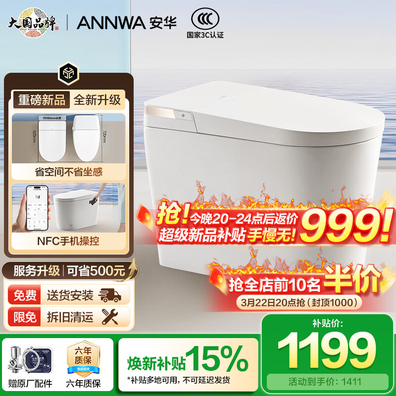 安华轻智能马桶小户型宽大座圈家用带水箱虹吸式落地大冲力座便 A5s【轻智标配】脚感冲水+手机操控+小户型宽座 400坑距(适用385mm及以上)