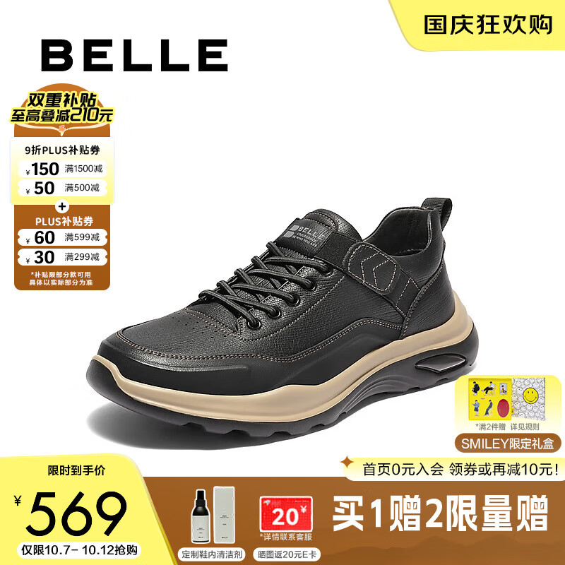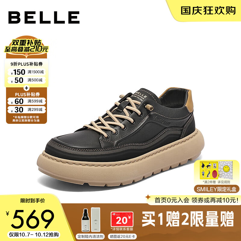 百丽厚底增高休闲鞋男2025新款秋季商场同款套脚工装板鞋8XE01CM5 黑色 40