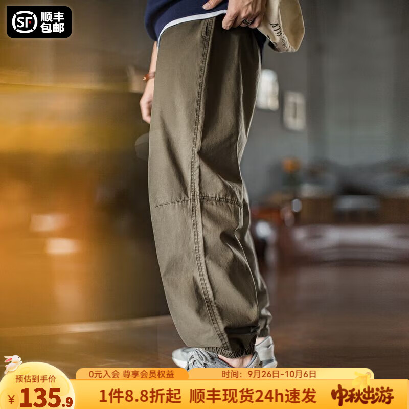 马登工装美式高街束脚裤男洗褪做旧廓形长裤子秋季新款男士直筒休闲裤 咖绿色 【裤子男款2025最新款】 2XL