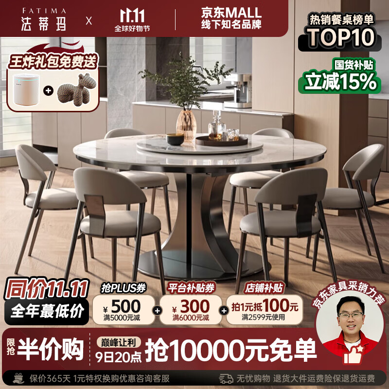 法蒂玛可伸缩岩板圆餐桌轻奢高端小户型方圆两用旋转奢石电磁炉餐桌 1.2米圆餐桌+转盘 一桌四椅