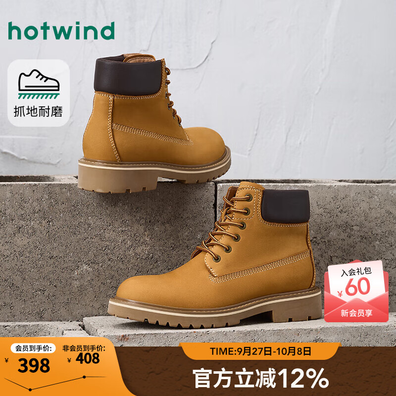 热风男鞋2025年冬季新款男士复古靴子棕色马丁靴厚底休闲短筒靴 25黄色(高帮)H95M25402 40