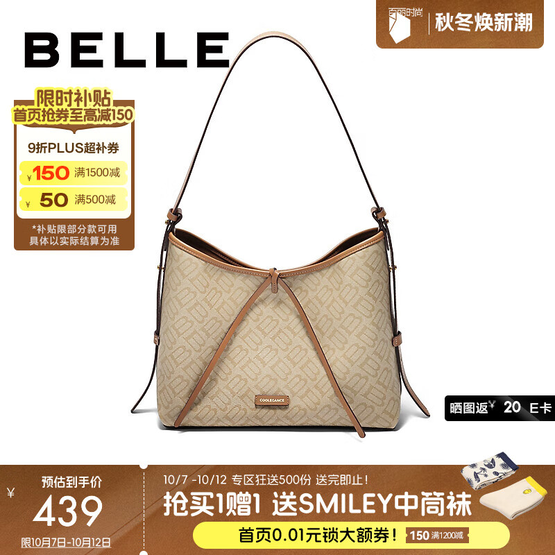 百丽包女25新复古海鸥老花系列hobo包单肩斜挎托特包X7326DX5 杏色 F
