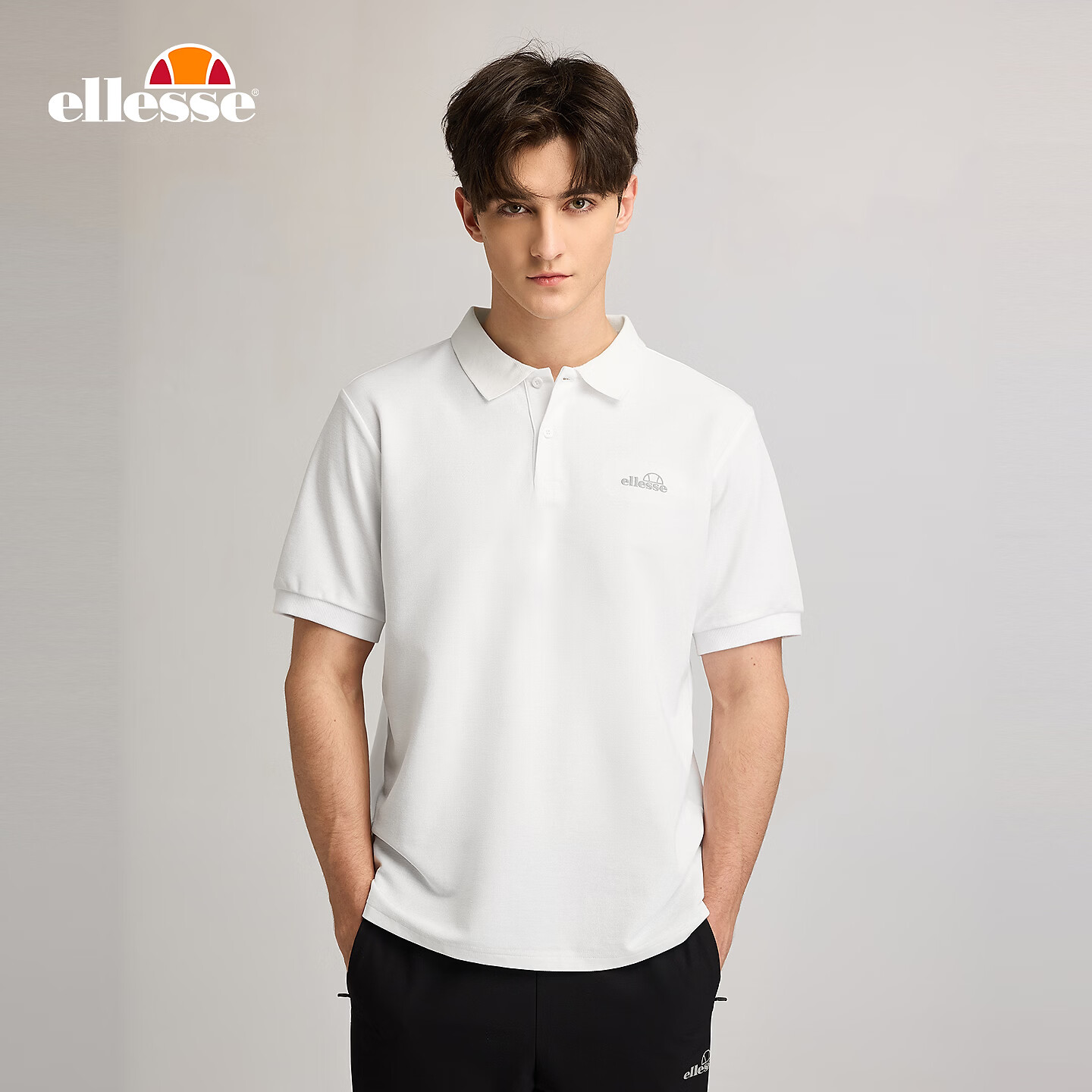 ellesse小贝壳官方polo衫男短袖t恤24夏季新款运动刺绣上衣 白色 L