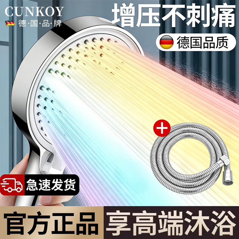 CUNKOY【德国】过滤花洒喷头过滤器带软管一套增压家用手持莲蓬头套装 六档花洒+1.5m软管【电镀银】 过滤净水丨六档增压丨大面板出水
