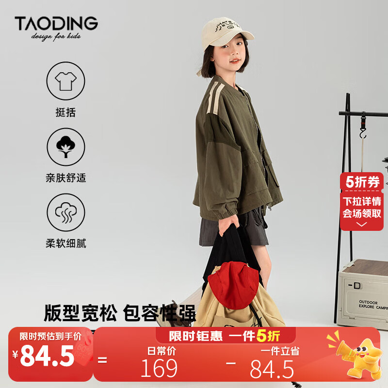 淘町女童复古外套春秋新款中大童复古美式撞色棒球服外套百搭休闲 墨绿色 160