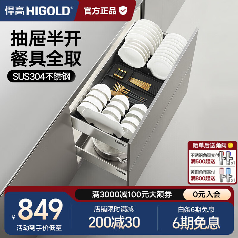 悍高(HIGOLD)厨房橱柜拉篮抽屉式304不锈钢碗碟拉篮碗架双层碗篮 800柜PDL2.0套装-可放鱼碟