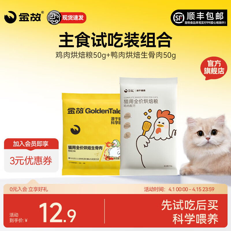 金故鸡肉烘焙猫粮无谷幼猫成猫高蛋白全价全期通用型0添加试吃体验装 鸡鸭双拼烘焙生骨肉试吃装50g*2