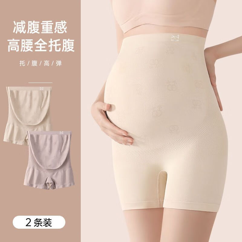 AILUKI孕妇安全裤免穿内裤三合一防走光打底裤大码高腰无痕短裤 【高腰托腹安全裤2条】肤色+咖色 L【95-140斤】