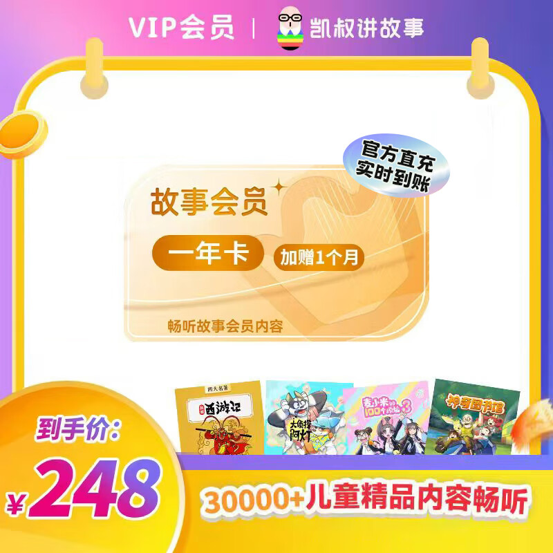 【正版加赠1个月】凯叔讲故事会员 西游记讲历史三国演义口袋神探 手机号直冲 年卡
