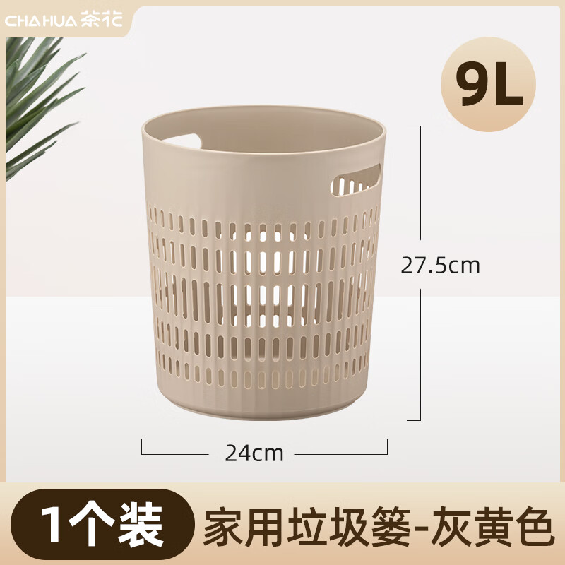 茶花镂空垃圾桶厨房客厅办公室厕所卫生间垃圾桶 1只装【灰黄色】镂空垃圾桶