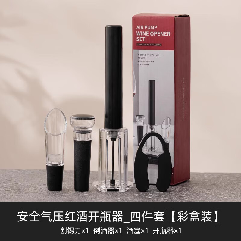 WCZ德国红酒开瓶器家用启酒器葡萄酒瓶塞起子神器网红手动开酒器酒具 安全气压红酒开瓶器【四件套】