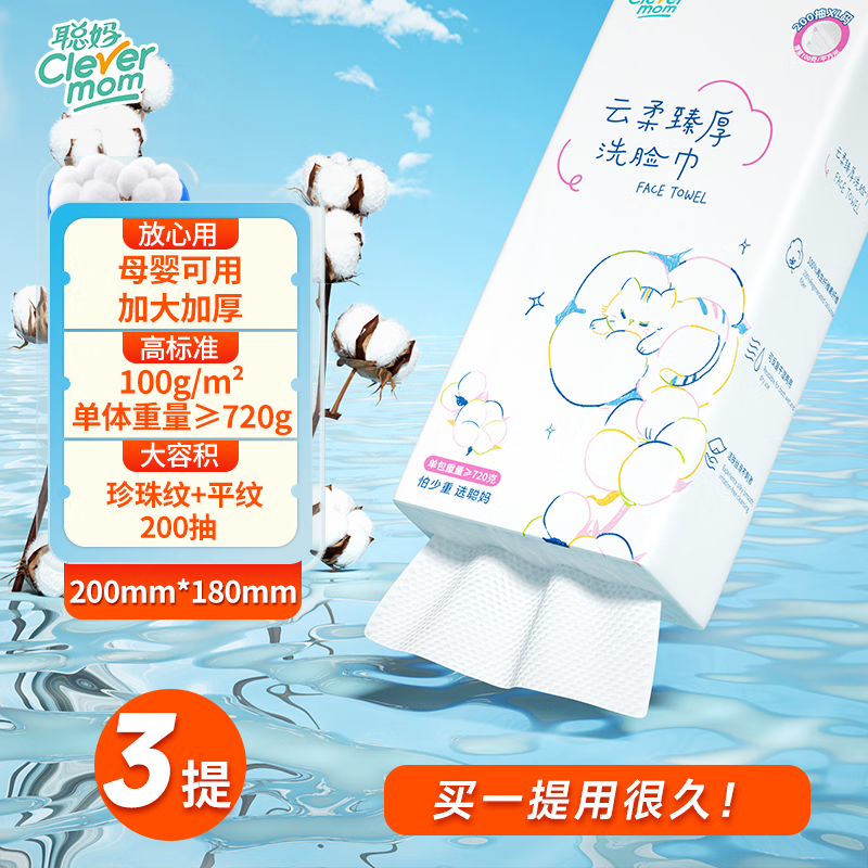 聪妈洁面巾洗脸巾干湿两用珍珠纹柔软亲肤抽取式大包装 3提