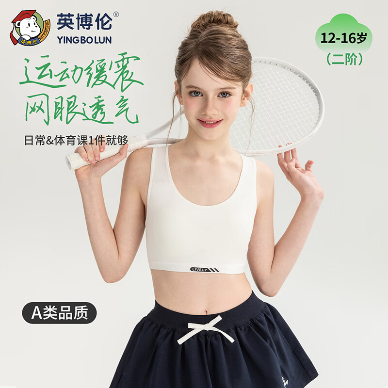 英博伦女大童运动背心初中发育期文胸女孩二三阶青春高中学生内衣 30201奶白 二阶 均码 75