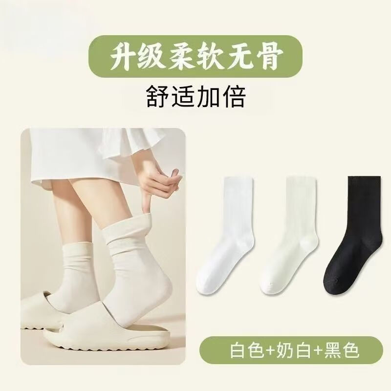 AILUKI小红书同款抗菌防臭无骨月子堆堆袜春秋白色中筒袜日系学院风长袜 无骨堆堆袜【黑色+白色+奶白】软糯舒适 100%官旗正品-抗起球【量贩】30双装