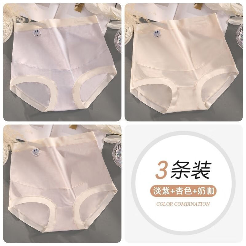 AILUKI新款60支莫代尔孕妇内裤女胖mm大码怀孕期专用中晚期孕妈高腰托腹 3条装-紫色+杏色+咖色 XL-【建议-85-120斤】