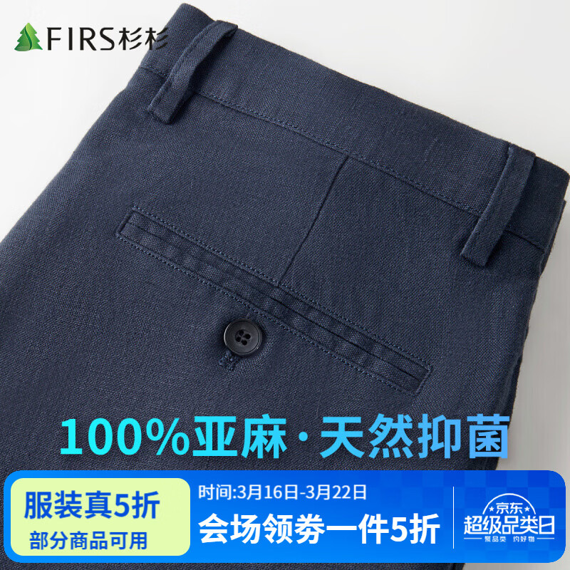 杉杉(FIRS)【亚麻】纯亚麻休闲裤男透气顺滑直筒裤商务轻薄长裤子 藏青 30 170/76A