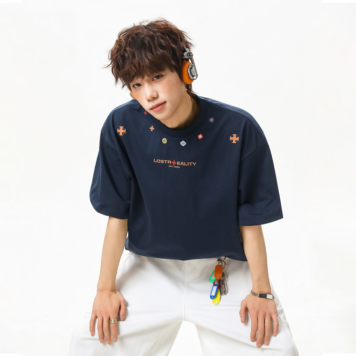 NEW OR MODE美式民族风印花短袖t恤男夏季新款潮牌宽松重磅纯棉青少年半袖T恤 藏青【高品质】 M 【建议90-110斤】