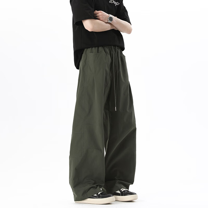 NEW OR MODE美式拼接速干休闲裤男夏季薄款宽松运动长裤子百搭休闲阔腿弯刀裤 军绿色【高品质】 M 【建议90-110斤】