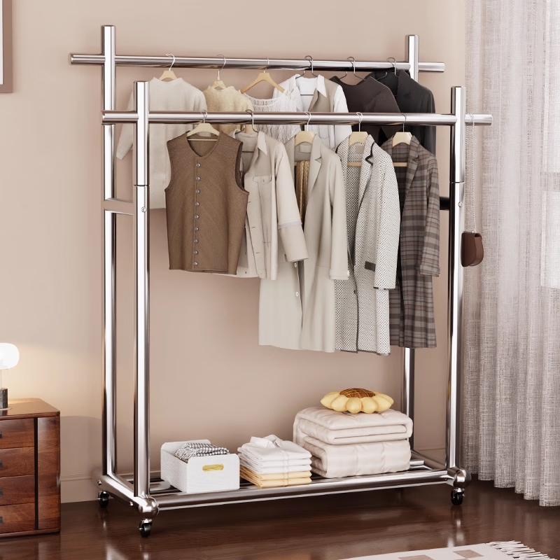 衣炫落地不锈钢晾衣架挂衣架衣帽架家用卧室服装店移动衣服陈列架双杆 双杆款-长80*高170【加粗底座】