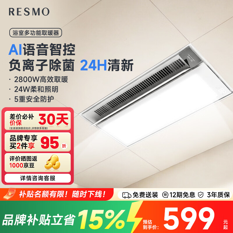 RESMO浴霸灯暖照明排气一体集成浴霸风暖一体室内加热多功能卫生间浴霸
