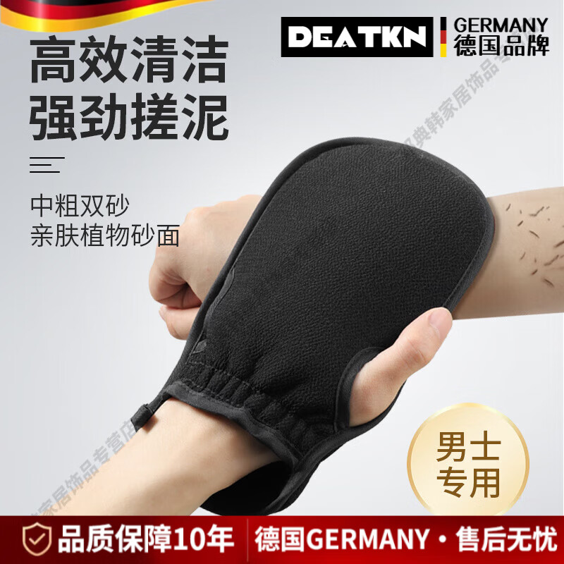 DEATKN德国搓澡巾强力搓泥灰男士后背特粗砂擦背手套高质量大号洗澡神器 【中粗双砂_升级植物纤维】-黑色