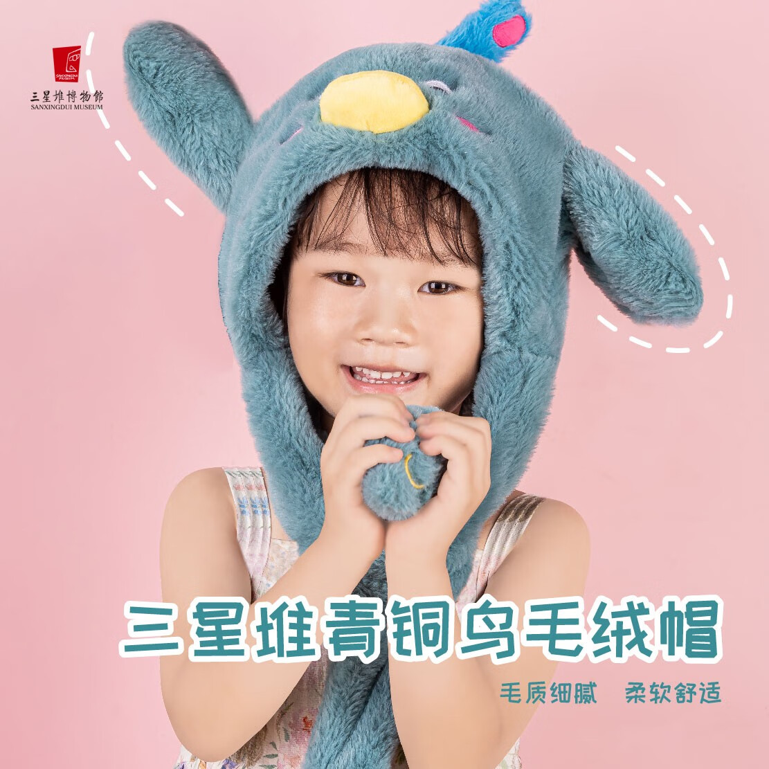三星堆博物馆文创青铜鸟毛绒帽翅膀会动帽子保暖亲子互动儿童小礼物毛绒帽儿童可爱帽子围巾一体捏翅膀会动帽子 三星堆青铜鸟毛绒帽一捏翅膀会动