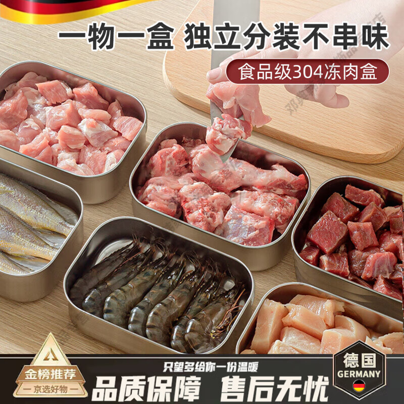 DEATKN德国冻肉分装盒不锈钢保鲜盒食品级冰箱收纳盒冷冻格子一周备菜盒 304冻肉盒-小号【一物一盒不串味】 500ml