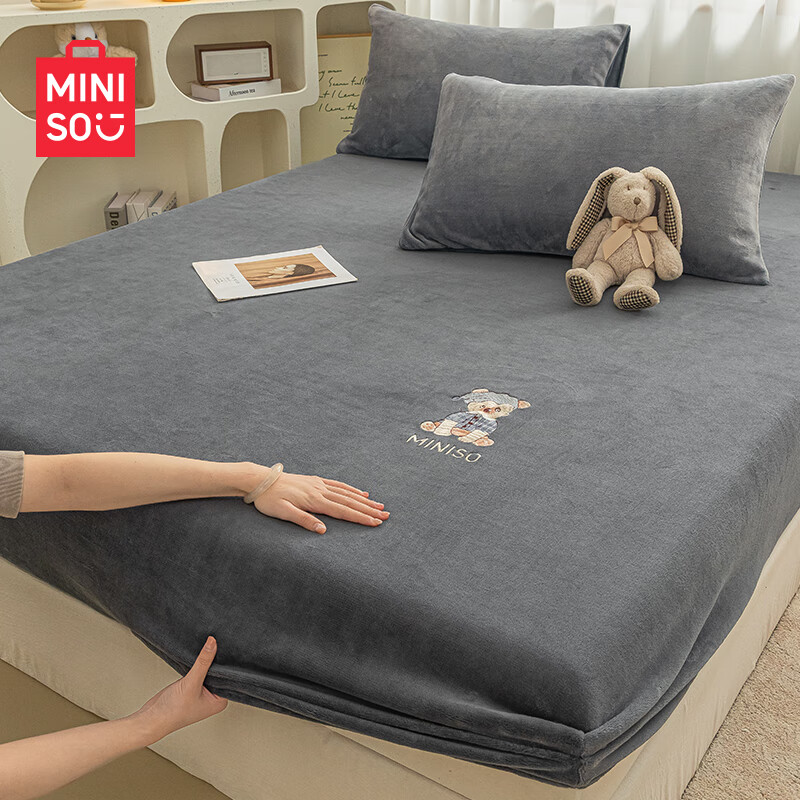 名创优品牛奶绒床笠单件冬季加厚珊瑚绒床罩床垫罩保护套全包床盖三件套 miniso-绅士灰 【冬季保暖】 180cm*200cm 床笠+枕套2只