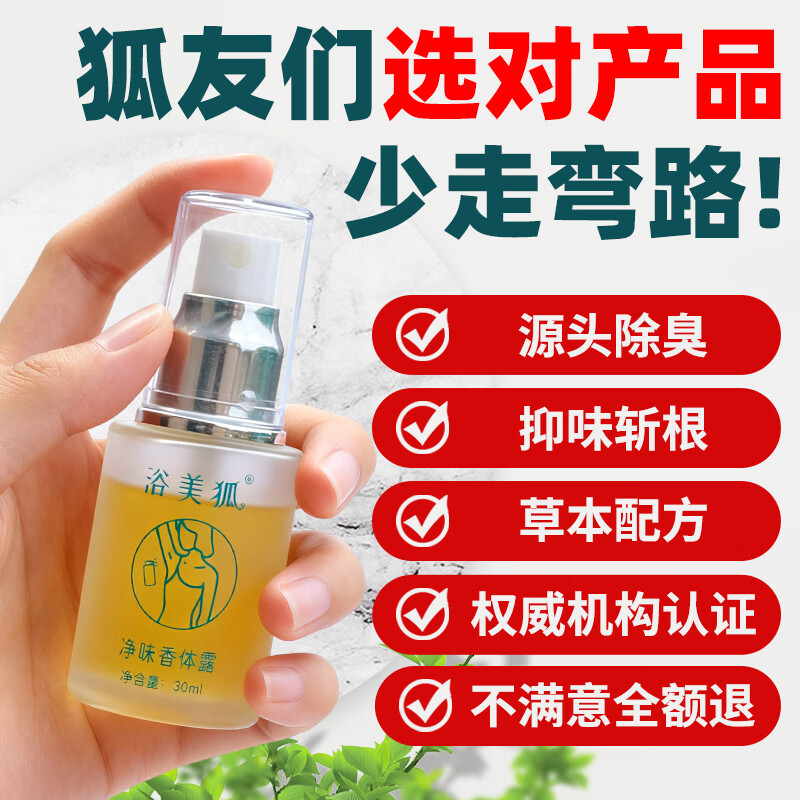 浴美狐草本净异味止汗露腋下窝汗臭味体臭狐除臭喷雾液香体男女专用2瓶