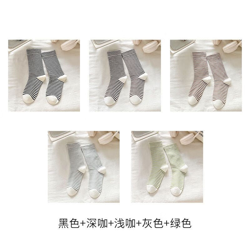 AILUKI都市丽人无骨袜子女中筒袜纯棉条纹堆堆袜产后孕妇松口月子袜春秋 【5双装】黑色+深咖+浅咖+灰色+绿色 5双