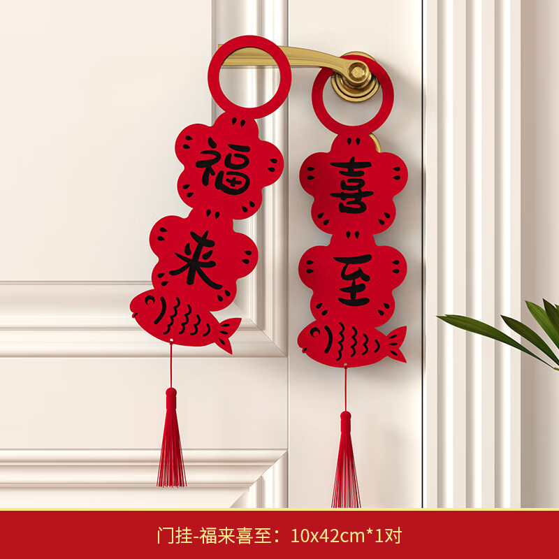 渡鹊桥新年门把手挂饰春节装饰品公司店铺入户门房间门卧室乔迁门把手 流苏款门把挂件【喜至+福来】