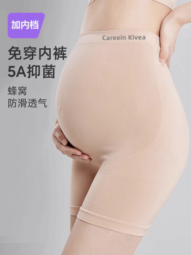 AILUKI孕妇安全裤蚕丝蛋白防走光二合一免穿内裤怀孕期高腰托腹打底裤女 【高腰4条装】黑色+肤色+牙白+卡其 L 90-150斤可穿