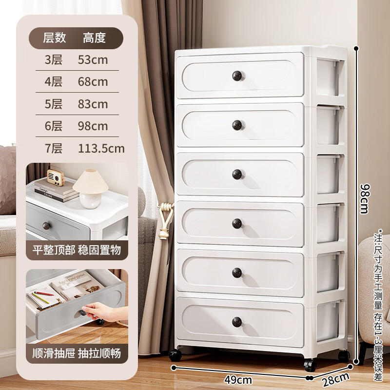 纳份爱抽屉式收纳柜家用卧室置物柜客厅墙边加厚五斗柜床头可移动储物柜 49cm简约白【赠万向滑轮】 3层