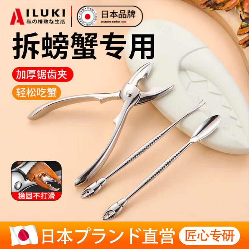 AILUKI日本吃螃蟹专用工具螃蟹钳蟹针蟹夹蟹八件拆螃蟹专用神器夹剪 吃蟹4件套