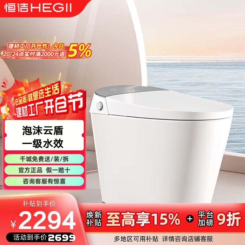 恒洁智能马桶一体机 泡沫云盾防溅不限水压随心贴大小冲智能坐便器G35 【离座自动大小冲】G35 305/300mm