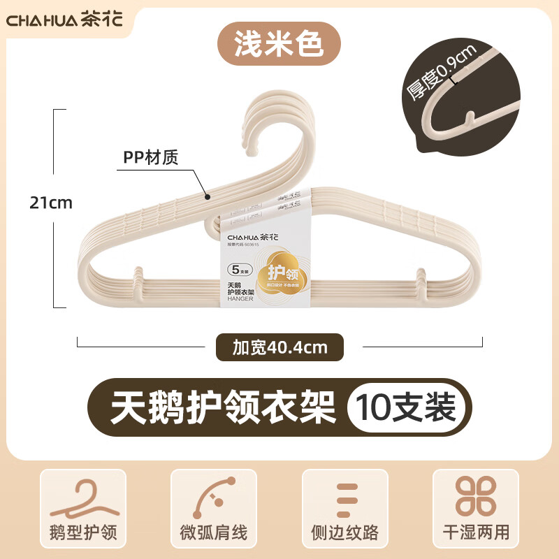 茶花家用天湖护领衣架宿舍衣架居家收纳衣架 米色【10支装】天鹅护领衣架