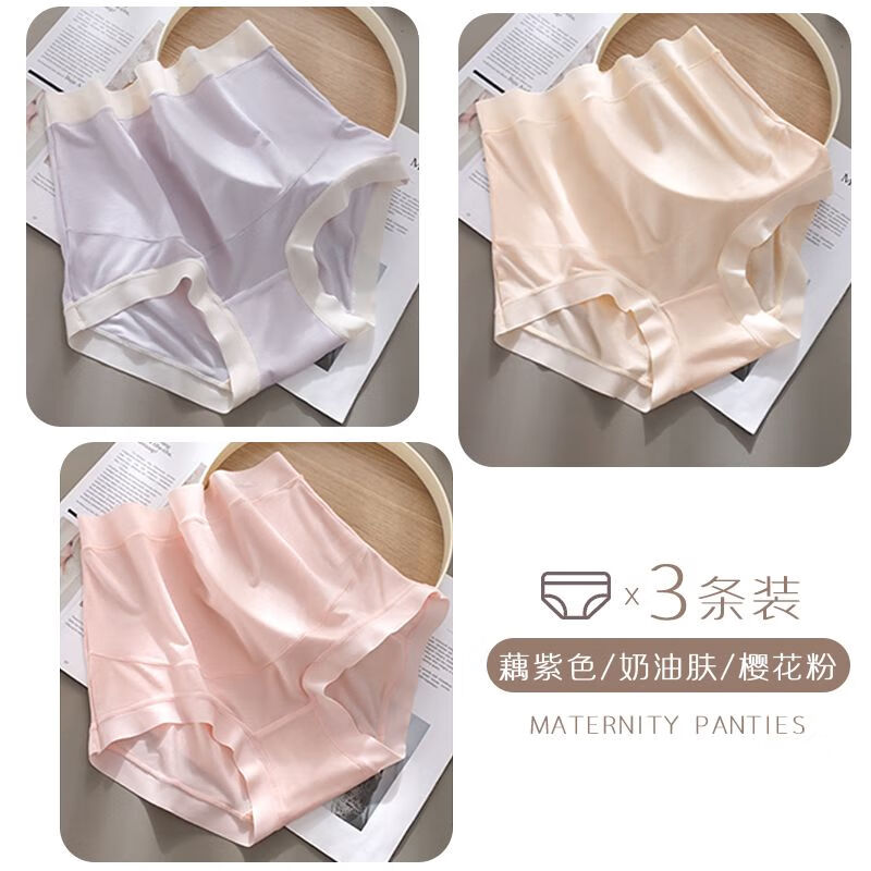 AILUKI莫代尔60支大码孕妇内裤高腰托腹孕期孕中期孕妇无痕内裤孕晚期裤 樱粉+淡紫+黑色 XL 建议-85-125斤