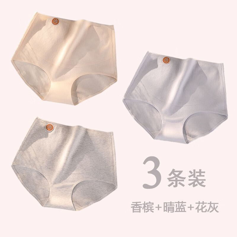 AILUKI高腰孕妇内裤女纯棉大码怀孕期中晚期托腹一片式无痕抗菌三角裤头 (中晚期拍大一码)香槟+晴蓝+花灰 XL